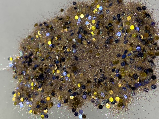 Fine purple and gold glitter mixed with blue and gold hexis 1tsp
