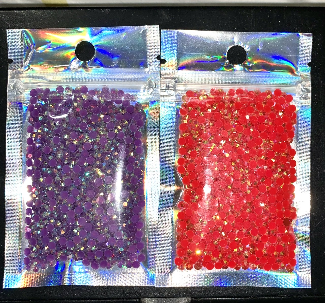 Red and purple rhinestones. Each bag contains 10g